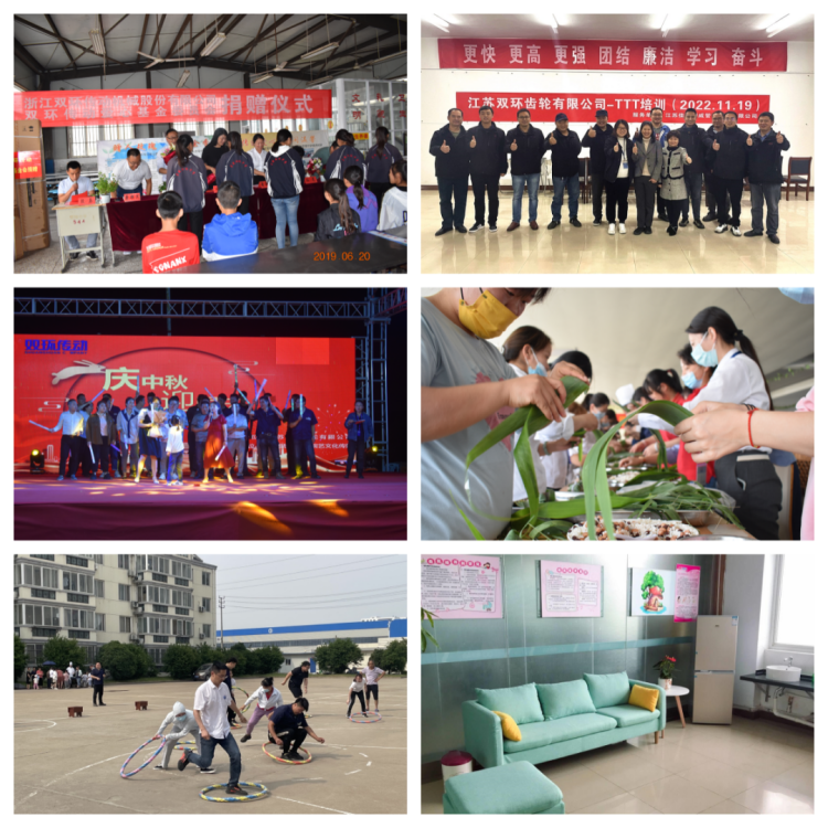 自創(chuàng)立以來,江蘇雙環(huán)秉承母公司雙環(huán)傳動(dòng)“好一點(diǎn),好很多”的優(yōu)秀文化基因,始終關(guān)注職工發(fā)展,努力為職工提供物質(zhì)和精神雙幸福,積極踐行“目標(biāo)文化” “責(zé)任文化” “改善文化” “奮斗文化” “家文化”五大企業(yè)文化,將“為職工搭建發(fā)展平臺(tái)”作為江蘇雙環(huán)的奮斗使命,致力于為每位職工提供多元化的職業(yè)發(fā)展路徑,著力塑造健康和諧的工作氛圍,不斷豐富廣大職工的精神文化生活,努力健全職工健康服務(wù)體系。